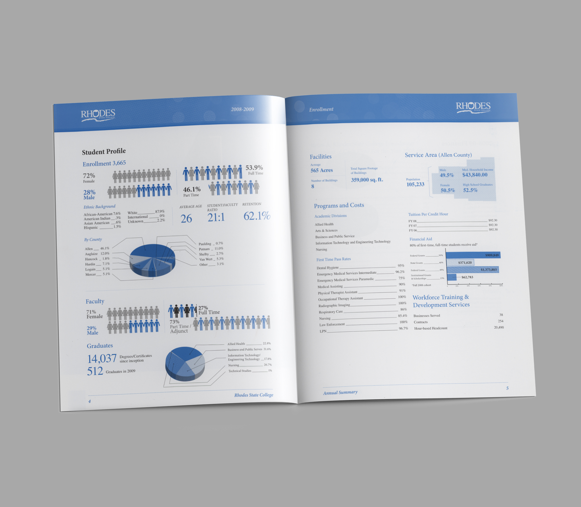 The Ask: Rhodes State College required a professional and visually engaging Annual Report to share their yearly milestones, financial data, and student success stories with stakeholders and the community.